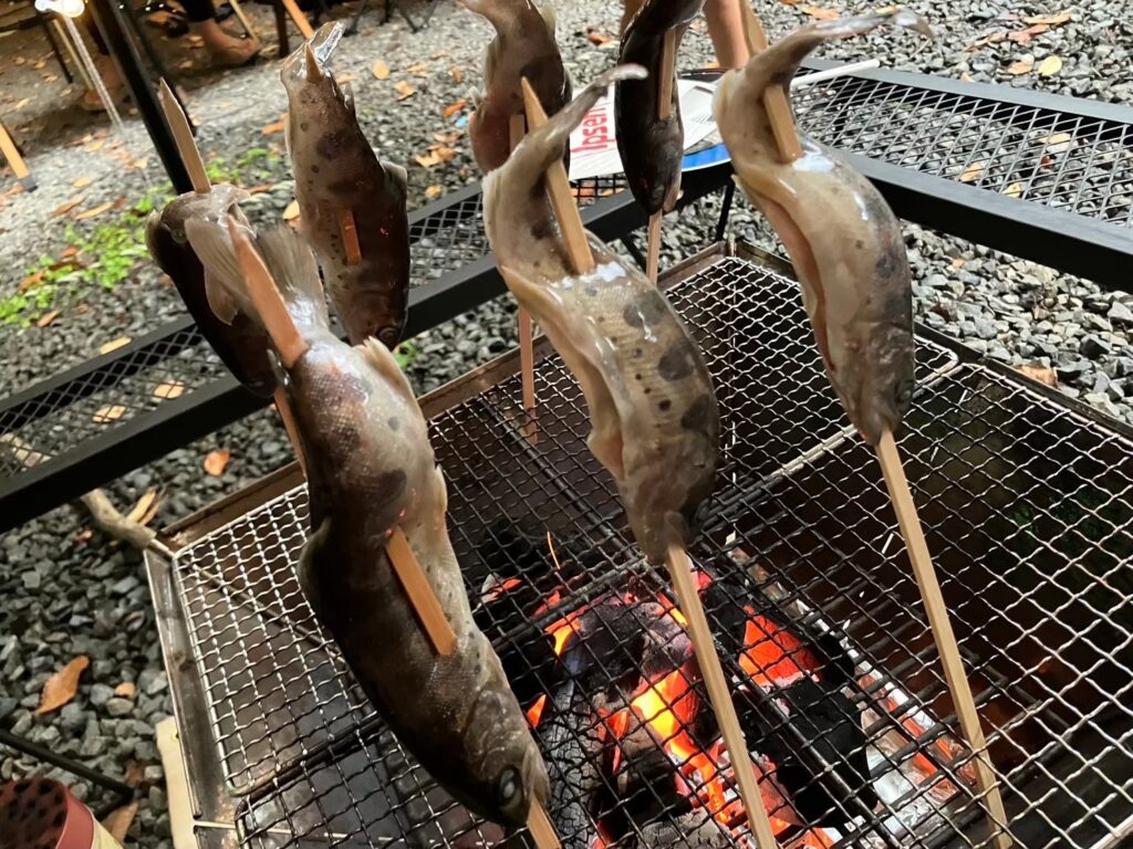そして驚くのは、取った鮎の内臓を自分で取り出し、そのまま自分のサイトで焼いて食べられること。初めて利用したとき、子供は驚きつつも「命をいただく」という体験を通して、食の大切さを学ぶことができました。もちろん味は最高。