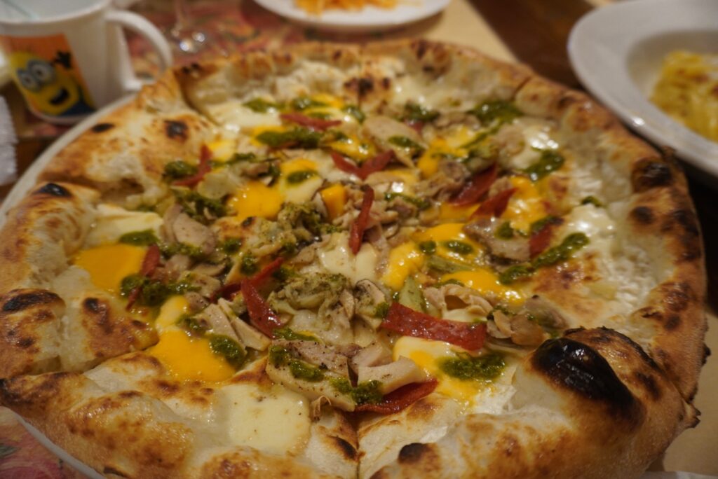 家で作るジェノベーゼピザはついソースを塗りすぎてしまいますが、こちらは具材の味を邪魔しない絶妙な量。今まで食べたピザの中で一番おいしかったと言っても過言ではありません。