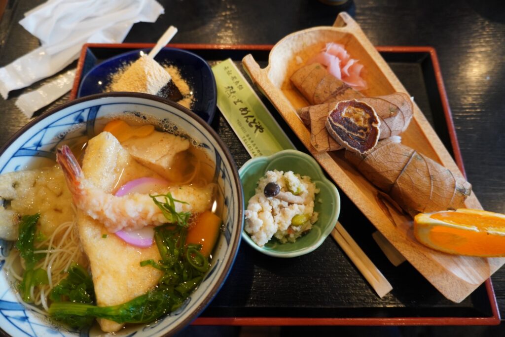 大人は柿の葉寿司とにゅう麺のセットや、わらび餅付きのセットをいただきました。