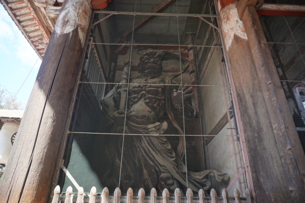 そのまま鹿ロードを進んでいくと、最初に目に入るのは高さ25mの「南大門」。左右には国宝の金剛力士像が立ち、2体で「宇宙の始まりと終わり、万物」を表していると言われています。
