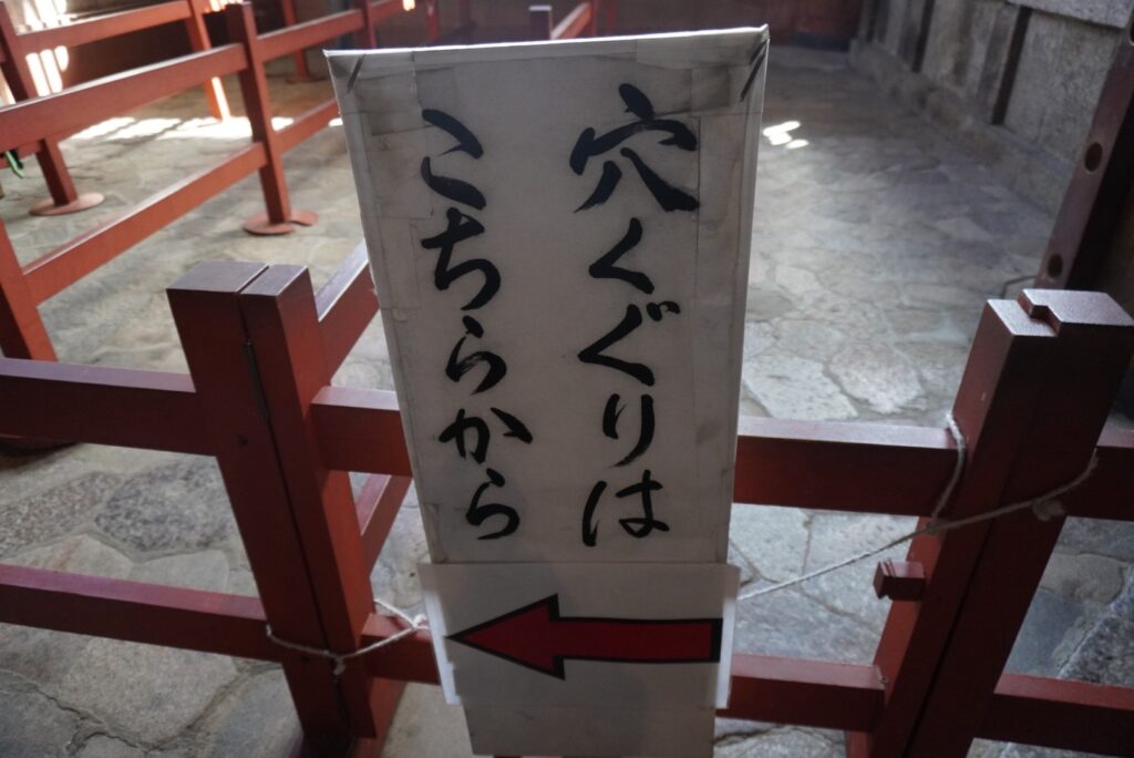 大仏殿の中を回ると、大仏さんのお鼻の穴の大きさと同じと言い伝えられている「柱の穴くぐり」があります。以前は並んだ記憶がなかったのですが、今回は行列ができていました。小学校の修学旅行の時に、みんなでくぐった記憶があります。