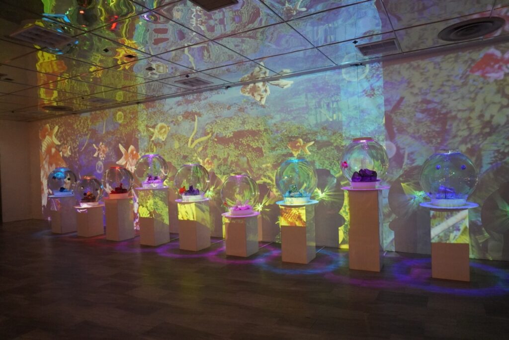 1つ目はトリックアート、2つ目はプロジェクションマッピングのような体験型展示、3つ目はゴージャスな金魚展示(あえて詳しく写真は載せないのでぜひ行ってみてください)。