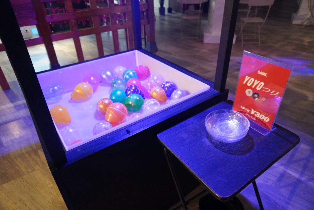 ヨーヨー釣り、金魚すくい、スーパーボールすくい、エサやり体験など、子どもが喜ぶ仕掛けもたくさん。