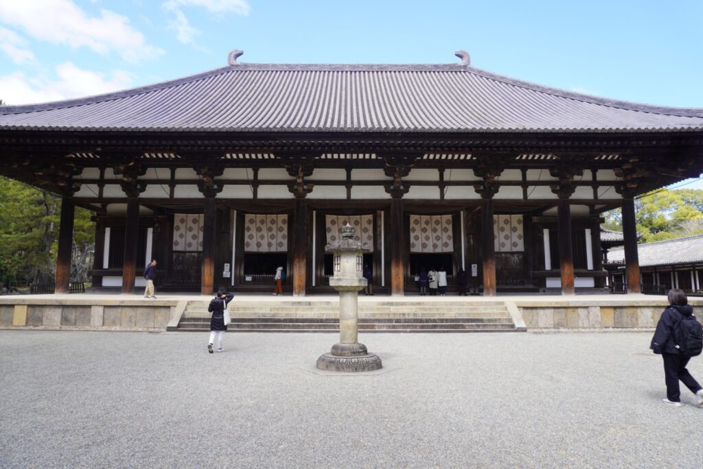まず目に入るのは国宝「金堂」。建てられたのは8世紀で、奈良時代そのものの姿が残っています。