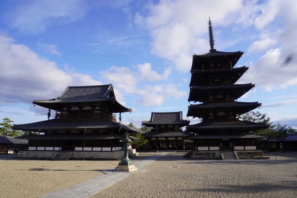 法隆寺は7世紀に創建され、聖徳太子ゆかりの寺院。西院伽藍は世界最古の木造建築群として世界遺産に登録されています。