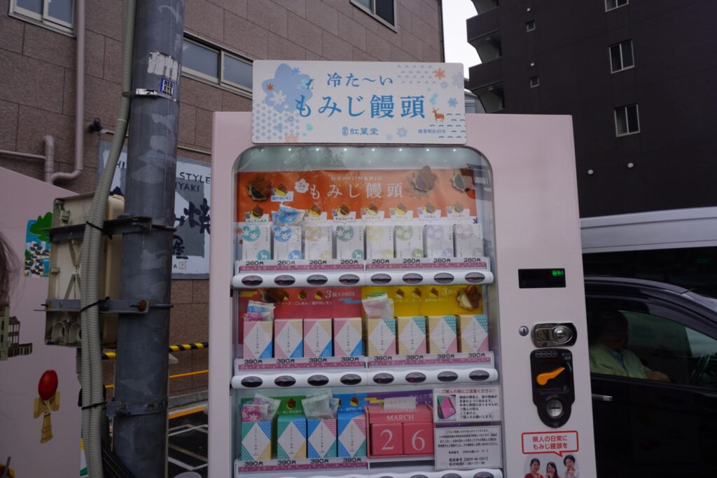 近くにはもみじまんじゅうの自動販売機もあり、さすが広島…!