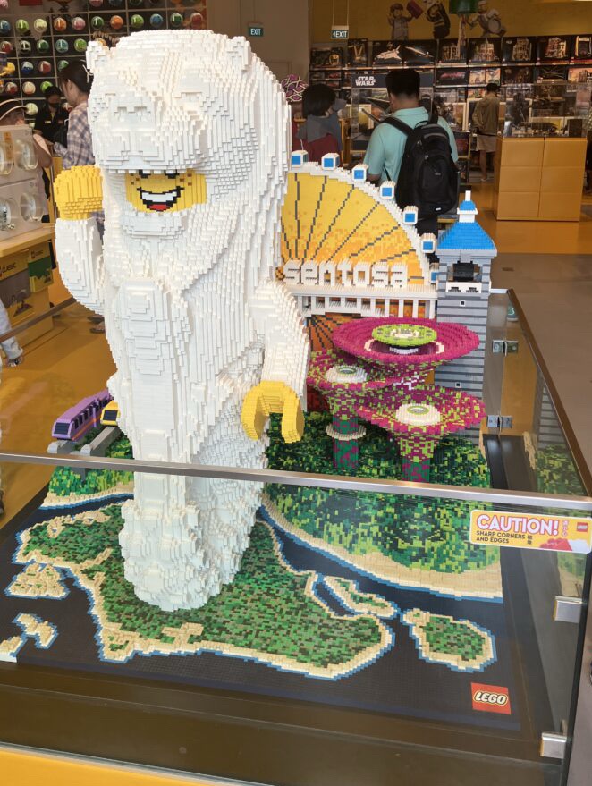 入口付近のレゴショップには、レゴで作られたマーライオンが!