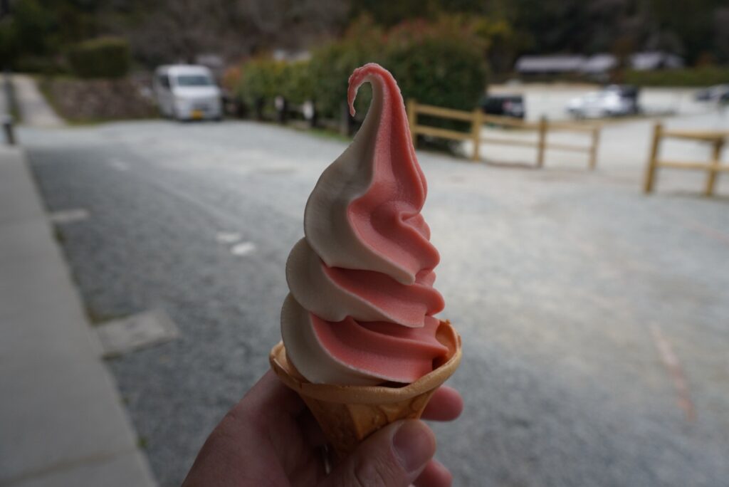 帰りにあすか野でソフトクリームを食べてひと休み。寒空の下でも娘はとても満足そうでした。